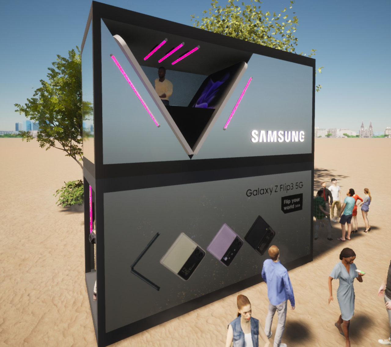 To add to the excitement, I created a Z Flip DJ booth on top of the mirror palace. DJs including Zoey Hasselbank, 22heures30, Black Frank and Deloin were seen mixing inside a giant Z Flip. The booth was hosted by the talented Bryan MG, who ensured the crowd was hyped up throughout the event.